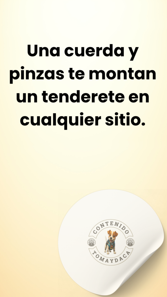 🧠 Consejo práctico: Lleva la cuerda enrollada en una bobina o en una bolsita con las pinzas ya listas. Así no pierdes tiempo y evitas enredos tipo novela turca.