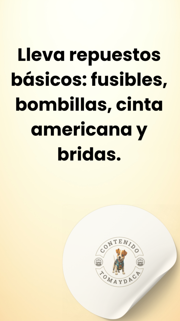 🧠 Consejo práctico: Guárdalo todo en una caja estanca o bolsita ZIP etiquetada. Cuando algo falle (y fallará), solo tendrás que abrir tu arsenal de héroe anónimo y actuar. 🦸♂️